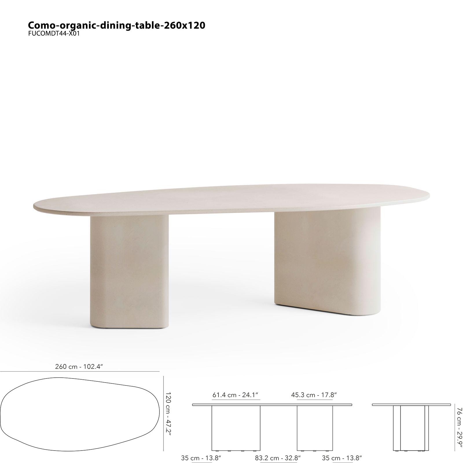 Como seeria laudade valmimisel on silmas peetud voolavust, seda kollektsiooni iseloomustavad graatsilised jooned ning ümarate vormide ilu. Iga ese on valmistatud ainulaadsest lubja ja betooni segust ning viimistletud käsitsi, nii saavutatakse iseloomulik tekstuur, mis ühendab betooni robustsuse siidise siledusega.